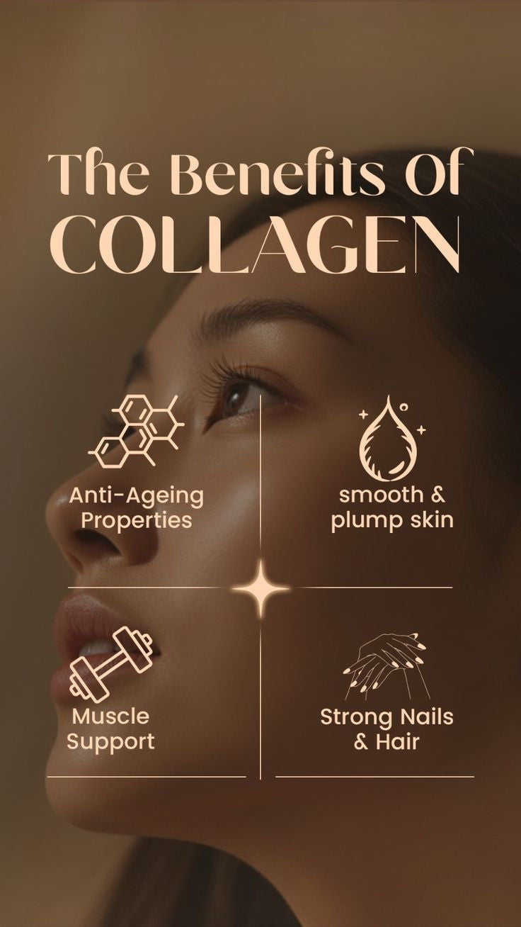 Collagen is the protein that keeps your skin firm, smooth, and youthful. From age 25, your natural collagen levels begin to decline leading to fine lines, loss of elasticity, and weaker hair and nails. Supplementing helps replenish what your body gradually loses, supporting beauty and strength from within.